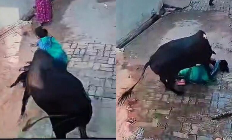 डॉगी को टहला रही थी महिला, तभी पीछे से सांड ने किया हमला… जमीन पर पटककर सींग से किए कई वार, Video