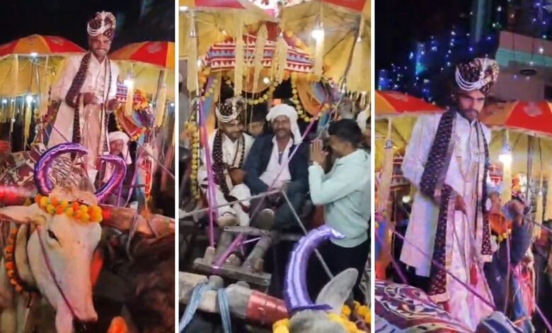 बैलगाड़ी पर बारात लेकर पहुंचा दूल्हा