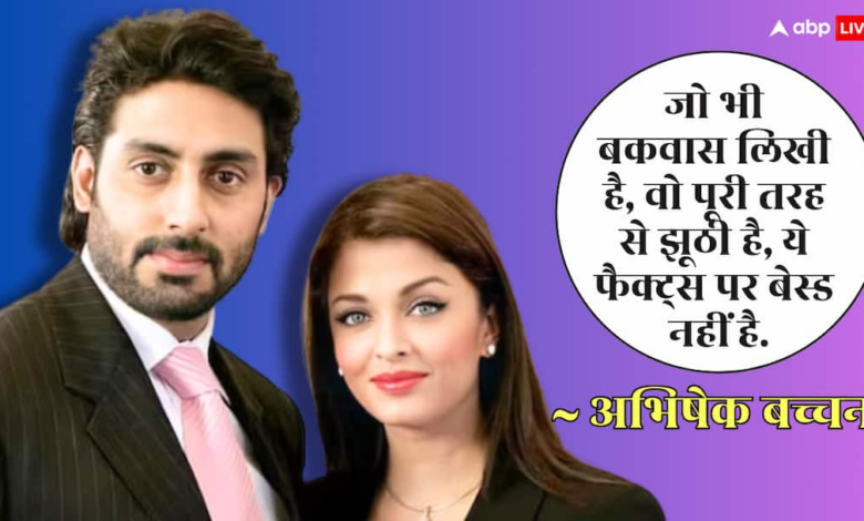 एक्टर अभिषेक बच्चन और एक्ट्रेस ऐश्वर्या राय का नाम बॉलीवुड के पावर कपल्स में शुमार किया जाता है. हालांकि कुछ महीने पहले कपल के तलाक की अफवाहें सामने आई थीं. तब तो अभिषेक और ऐश्वर्या इन अफवाहों पर चुप्पी साधे रहे. लेकिन अब एक्टर ने तलाक की खबरों पर पहली बार रिएक्ट किया है. अभिषेक ने इन अफवाहों को बेसलेस और बकवास बताया है.