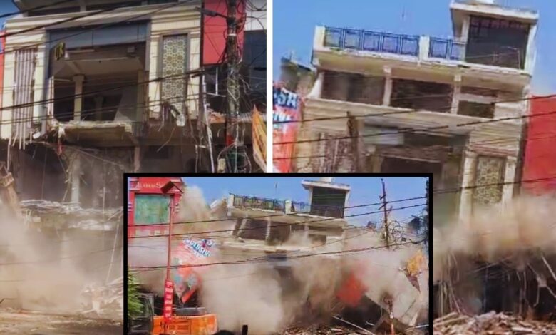 मेरठ के सेंट्रल मार्केट में चला बुलडोजर, पलक झपकते ही बिल्डिंग जमींदोज, VIDEO