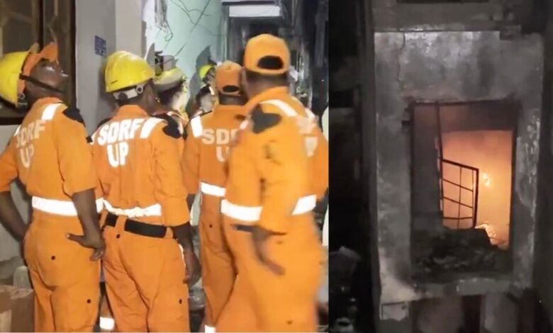 लखनऊ के अलीगंज में 3 मंजिला बिल्डिंग में लगी भीषण आग, छत का एक हिस्सा गिरा, 5 फायरमैन घायल