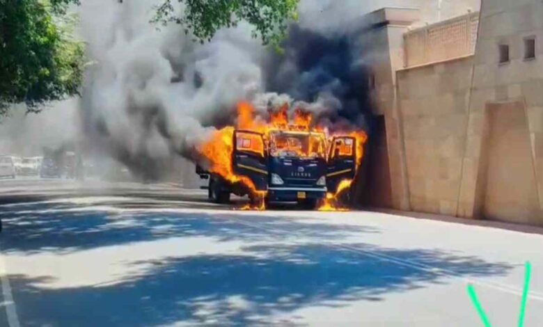 कैदी वैन में लगी भीषण आग