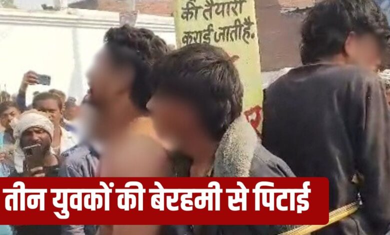 तीन युवकों को खंभे से बांधा