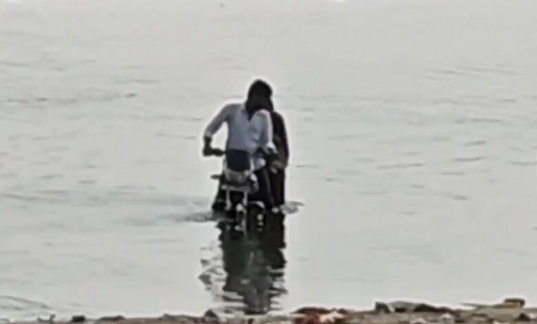 पत्नी और बच्चे को बिठाकर पार करने लगा नदी, बीच में बंद हुई बाइक…अटकी सांसें