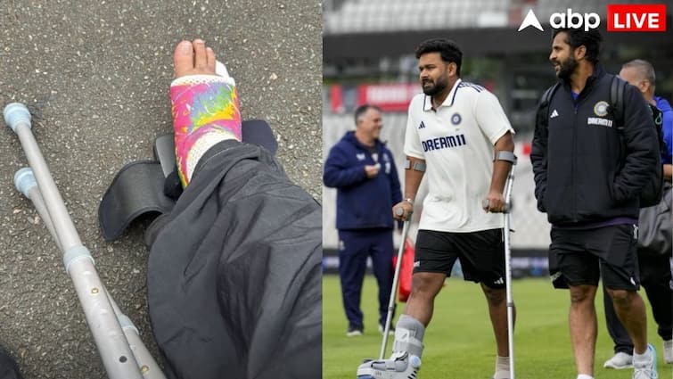 Rishabh Pant Injury: ऋषभ पंत बुरी तरह चोटिल हो गए हैं. मैनचेस्टर टेस्ट की पहली पारी में बल्लेबाजी करने के दौरान पंत के अंगूठे में चोट लग गई, जिस वजह से भारतीय टेस्ट टीम के उपकप्तान का चलना भी मुश्किल हो रहा था. अब पैर में लगी चोट पर ऋषभ पंत का पहला रिएक्शन सामने आया है. पंत ने अपनी इंस्टाग्राम स्टोरी पर एक फोटो शेयर किया है, जिसमें उनके पैर में प्लास्टर बंधा नजर आ रहा है. पंत के इस फोटो ने करोड़ों फैंस का दिल तोड़ दिया है. बता दें कि पंत चोट की वजह से ओवल में होने वाले पांचवें टेस्ट से बाहर हो गए हैं.