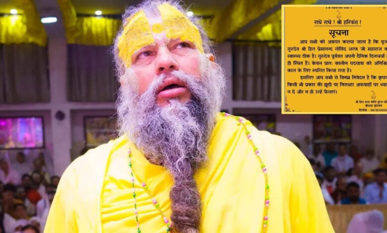 अब इसको लेकर आश्रम की तरफ से भी स्पष्टीकरण जारी किया गया है. इसमें कहा गया कि, “आप सभी को अवगत कराया जाता है कि पूज्य गुरुदेव श्री हित प्रेमानंद गोविंद शरण जी महाराज का स्वास्थ्य ठीक है. गुरुदेव पूर्ववत अपनी दैनिक दिनचर्या में ही स्थित हैं. केवल प्रातः कालीन पदयात्रा को अनिश्चित काल के लिए स्थगित किया गया है. इसलिए आप सभी से विनम्र निवेदन है कि कृपया किसी भी प्रकार की झूठी या निराधार अफवाहों पर ध्यान न दें और न ही उन्हें फैलाएं.”