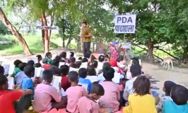 बेसिक स्कूलों को मर्ज करने के विरोध में समाजवादी पार्टी की ओर से शुरू किया गया पीडीए पाठशाला