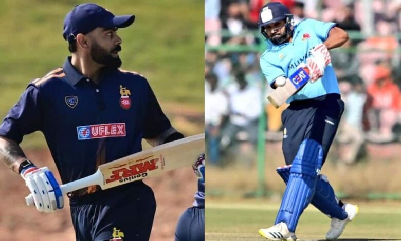 भारत के घरेलू वनडे टूर्नामेंट यानी विजय हजारे ट्रॉफी में इस बार कई सुपरस्टार खिलाड़ी खेल रहे हैं. बुधवार से इस डोमेस्टिक टूर्नामेंट की शुरुआत ही. इस टूर्नामेंट में दिग्गज बल्लेबाज विराट कोहली दिल्ली की टीम का हिस्सा हैं. वहीं हिटमैन के नाम से मशहूर रोहित शर्मा मुंबई के लिए खेल रहे हैं. विराट कोहली ने दिल्ली के लिए खेलते हुए 83 गेंद में शतक जड़ा. चेज़ मास्टर ने आंध्र के खिलाफ 299 रनों के लक्ष्य का पीछा करते हुए 9 चौकों और 3 छक्कों की बदौलत शतक पूरा किया. वहीं मुंबई के लिए सिक्किम के खिलाफ 237 रनों के टारगेट का पीछा करते हुए रोहित शर्मा ने 71 गेंद में सेंचुरी बना डाली. रोहित ने सिर्फ 94 गेंद में 155 रनों की ताबड़तोड़ पारी खेली. हिटमैन के बल्ले से 18 चौके और 9 छक्के निकले.