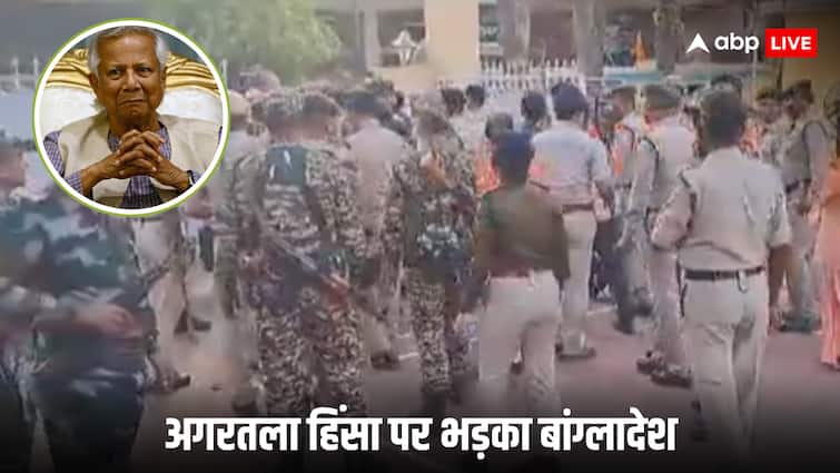 India-Bangladesh News: बांग्लादेश में हिंदू संत चिन्मय कृष्ण दास की गिरफ्तारी के खिलाफ त्रिपुरा की राजधानी अगरतला में सोमवार (2 दिसंबर) को एक विशाल विरोध रैली निकाली गई. जहां पर गुस्साई भीड़ ने बांग्लादेशी उच्चायोग पर हमला कर दिया. इस घटना के बाद पड़ोसी मुल्क की मोहम्मद यूनुस की अंतरिम सरकार भड़क गई. उन्होंने हिंसक प्रदर्शन का विरोध किया और भारत सरकार से घटना की गहन जांच की मांग की.