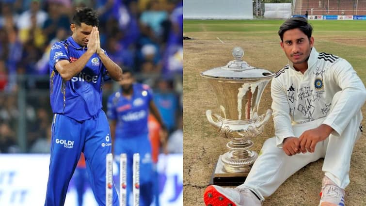 IPL 2025 Mega Auction Anshul Kamboj Aaqib Khan: अंशुल कंबोज और आकीब खान ने हाल ही में दिलीप ट्रॉफी 2024 में शानदार प्रदर्शन किया. आकीब इंडिया ए टीम का हिस्सा थे. उनकी टीम चैंपियन बन गई है. वहीं अंशुल इंडिया सी टीम की ओर से खेले. वे इस बार सबसे ज्यादा विकेट लेने वाले गेंदबाज रहे. ये दोनों ही गेंदबाज आईपीएल 2025 मेगा ऑक्शन में मोटी रकम हासिल कर सकते हैं. टीमों की नजर इन पर होगी. अंशुल मुंबई इंडियंस की ओर से खेल चुके हैं.