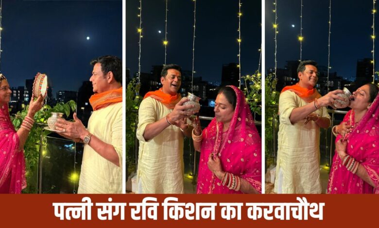 भोजपुरी फिल्मों के अभिनेता और उत्तर प्रदेश के गोरखपुर से सांसद रवि किशन शुक्ला ने अपनी बीवी के साथ करवाचौथ का त्योहार मनाया. शुक्रवार को दिन के समय रवि किशन मुख्यमंत्री योगी आदित्यनाथ के साथ कार्यक्रम में दिखे. वहीं, शाम को वह पति की भूमिका में नजर आएं. उन्होंने करवा चौथ पर पत्नी प्रीति शुक्ला को पानी पिलाकर उनका व्रत खुलवाया. रवि किशन ने देर रात करवाचौथ के फोटो और वीडियो भी सोशल मीडिया पर पोस्ट किए. उन्होंने महिलाओं को करवाचौथ पर्व की शुभकामनाएं भी दीं.