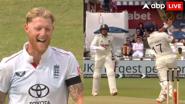 Ben Stokes Reaction After Rishabh Pant Shot: भारत और इंग्लैंड के बीच पहला टेस्ट मैच लीड्स में खेला जा रहा है. इस मैच में इंग्लैंड ने टॉस जीतकर पहले गेंदबाजी करने का फैसला किया. इसके जवाब में भारतीय टीम बल्लेबाजी करने आई. भारत ने इस टेस्ट मैच की पहली पारी में इंग्लैंड को बैकफुट पर धकेल दिया है. लीड्स टेस्ट के पहले दिन टीम इंडिया के उपकप्तान ऋषभ पंत और इंग्लैंड के कप्तान बेन स्टोक्स के बीच एक अलग ही कंप्टीशन देखने को मिला, जिसका वीडियो सोशल मीडिया पर वायरल हो रहा है.