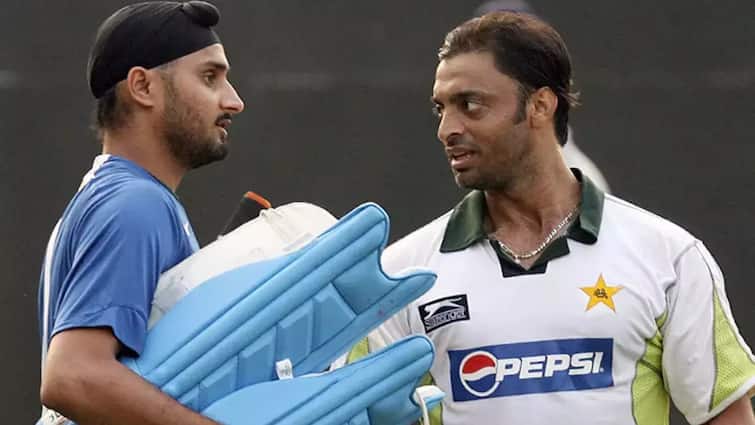 shoaib akhtar and harbhajan singh funny banter video viral on social media sports news | Watch: फिर आमने-सामने हुए शोएब अख्तर और हरभजन सिंह, पाकिस्तानी गेंदबाज ने कहा
