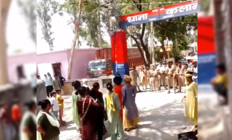 कलान थाने के बाहर हंगामा करते किन्नर